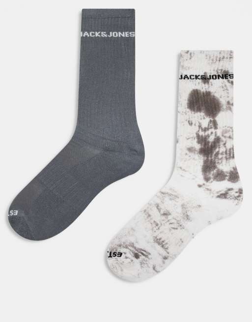 Jack & Jones – 2er-Pack Sportsocken in Creme und mit grünem Batikmuster