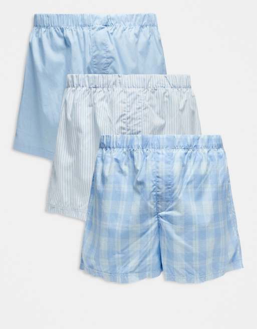 Jack & Jones – 3er-Pack karierte Web-Boxershorts in Blau