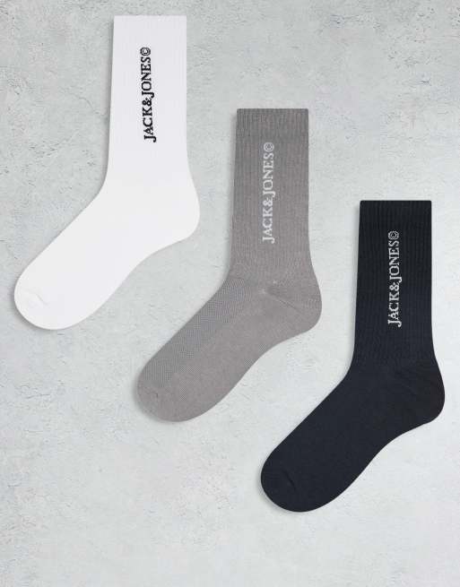 Jack & Jones – 3er-Pack Socken mit Logo in Schwarz, Grau, Weiß