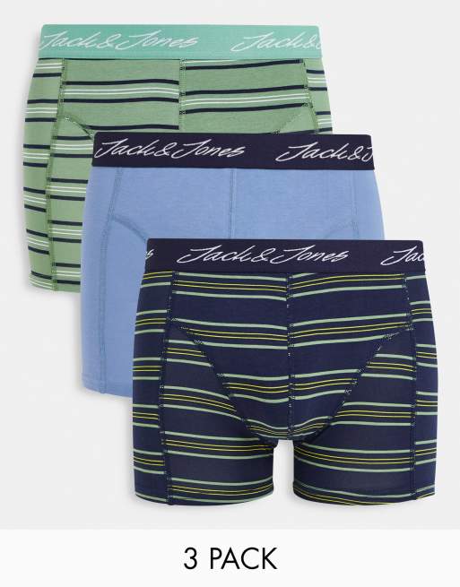 Jack & Jones – 3er-Pack Unterhosen in Grün und Blau gestreift