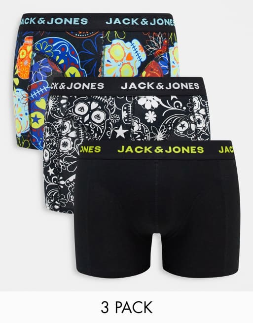 Jack & Jones – 3er-Pack Unterhosen mit buntem Totenkopf-Print