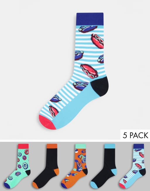 Jack & Jones – 5er-Pack mehrfarbige Socken mit Essensmotiven