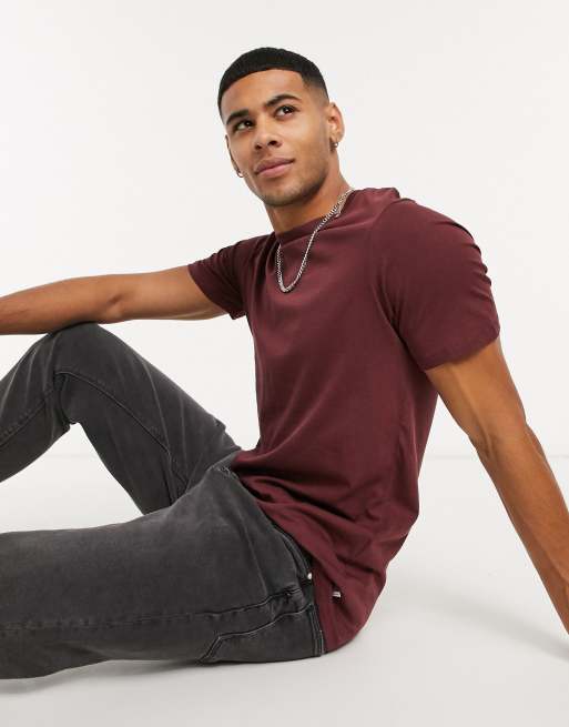 Jack & Jones Essentials – Baumwoll-T-Shirt in Burgunderrot mit Rundhalsausschnitt - RED