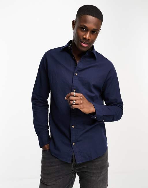 Jack & Jones – Essentials – Leinenhemd in Marineblau