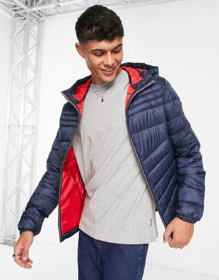 Jack & Jones – Essentials – Wattierte Jacke in Marineblau mit Kapuze