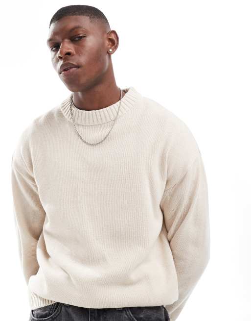 Jack & Jones – Gerippter Oversize-Pullover aus Grobstrick in Cremeweiß mit Rundhalsausschnitt