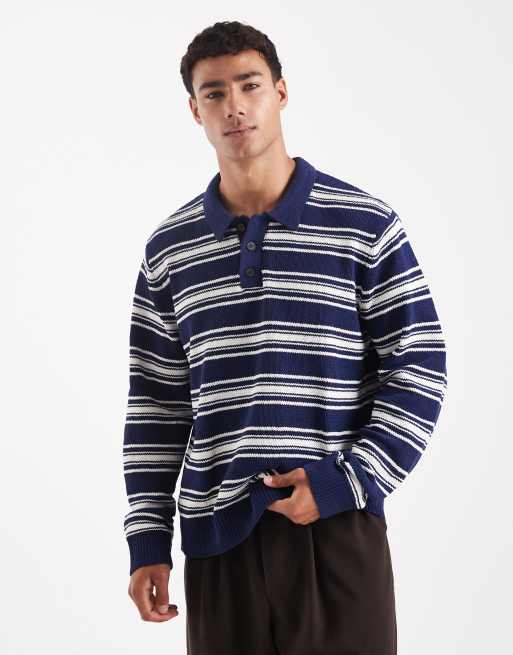 Jack & Jones – Gestreiftes Strick-Polohemd in Marineblau