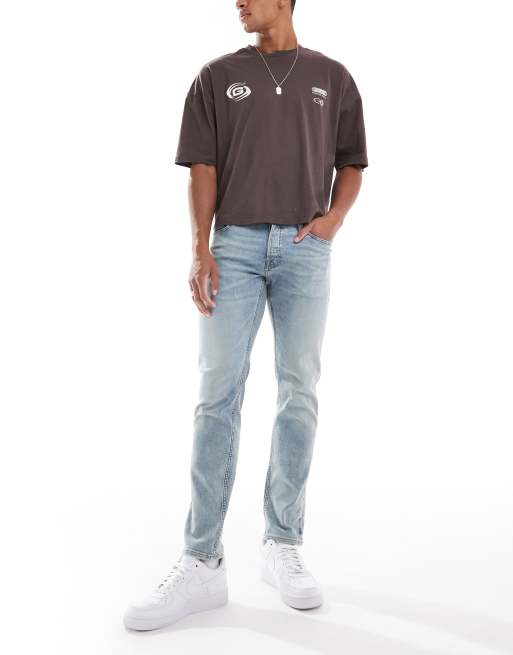 Jack & Jones – Glenn – Jeans in hellblauer Waschung mit schmalem Schnitt