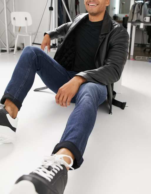 Jack & Jones Intelligence – Glenn – Schmal geschnittene Jeans in Blauschwarz