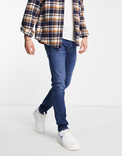 Jack & Jones Intelligence – Glenn – Schmal geschnittene Karottenjeans in Mittelblau