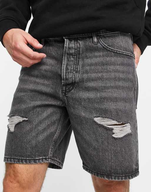 Jack & Jones Intelligence – Jeansshorts in verwaschenem Schwarz mit lockerem Schnitt und Zierrissen