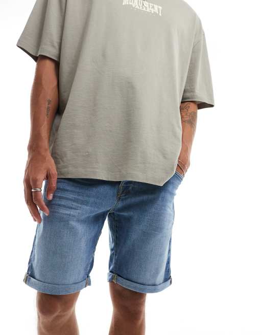 Jack & Jones – Jeans-Shorts in Mittelblau