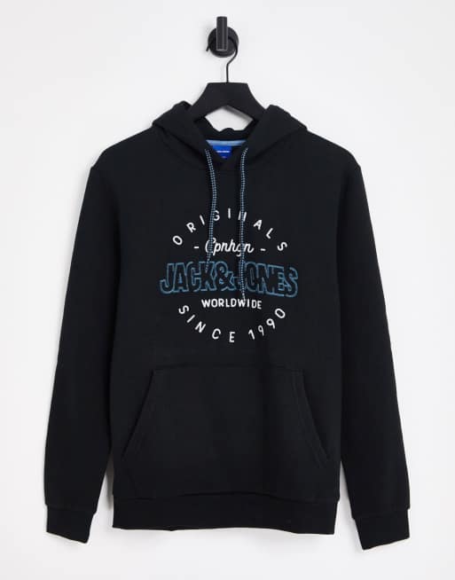 Jack & Jones – Kapuzenpullover in Schwarz mit Logo