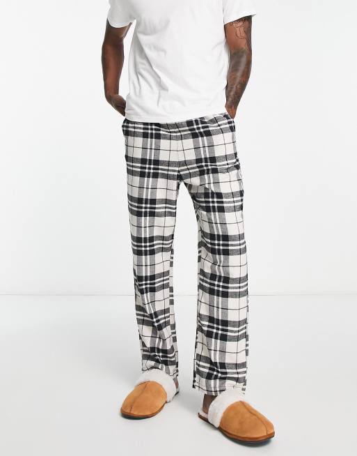 Jack & Jones – Karierte Flanell-Pyjamahose in Schwarz und Weiß