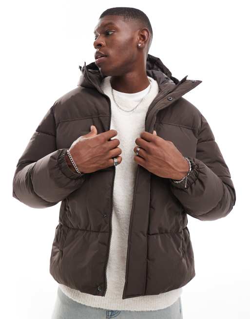 Jack & Jones – Kurze Pufferjacke in Braun