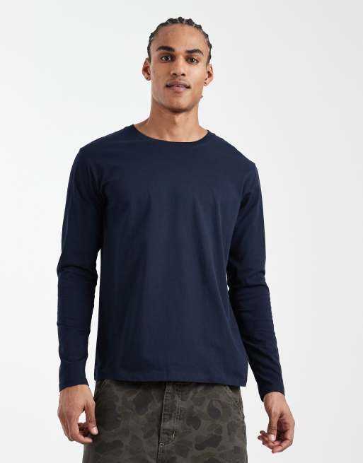 Jack & Jones – Langärmliges T-Shirt in Marineblau