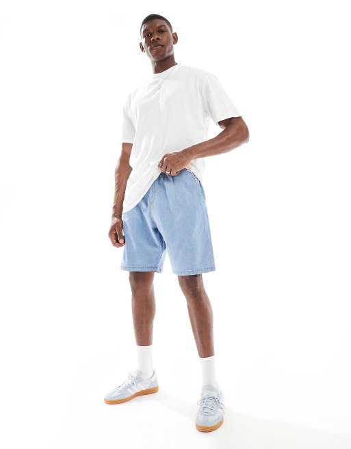 Jack & Jones – Locker sitzende Jeansshorts in hellblauer Waschung mit Tunnelzug