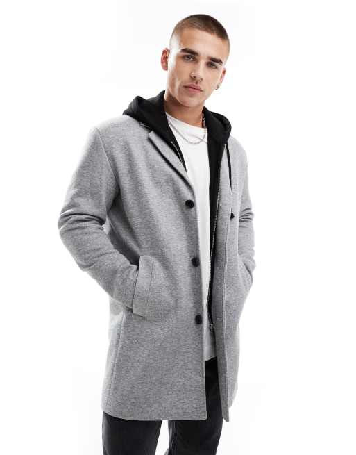 Jack & Jones – Mantel aus Jersey in meliertem Hellgrau