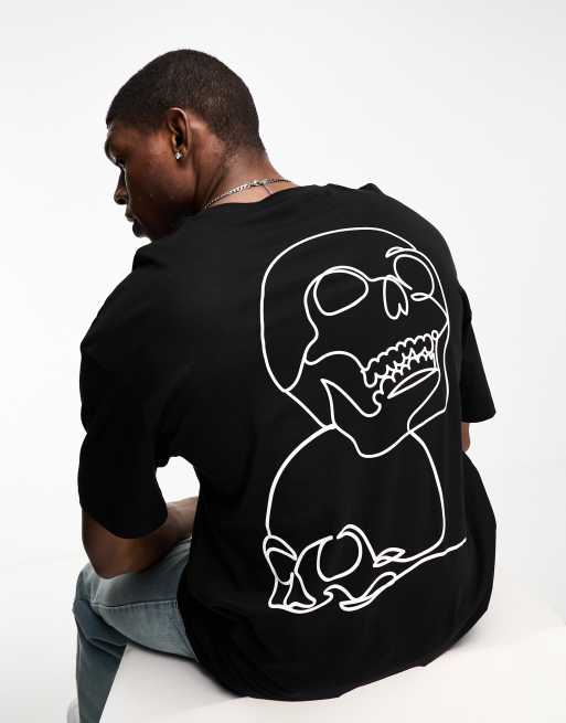 Jack & Jones Originals – Oversize-T-Shirt in Schwarz mit Totenkopfprint hinten