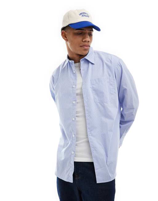 Jack & Jones – Oversize-Hemd aus Baumwollpopeline in Blau gestreift