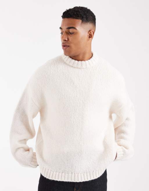 Jack & Jones – Oversize-Pullover aus flauschigem Garn in Cremeweiß mit Rundhalsausschnitt