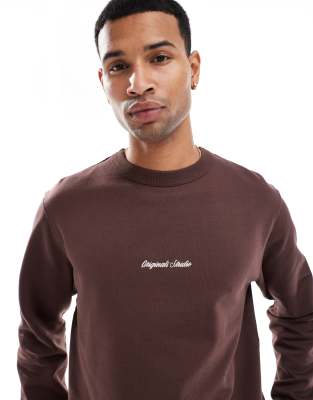 Jack & Jones – Oversize-Sweatshirt in Braun mit Logostickerei