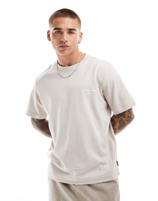 Jack & Jones – Oversize-T-Shirt in Beige mit Core-Brustprint