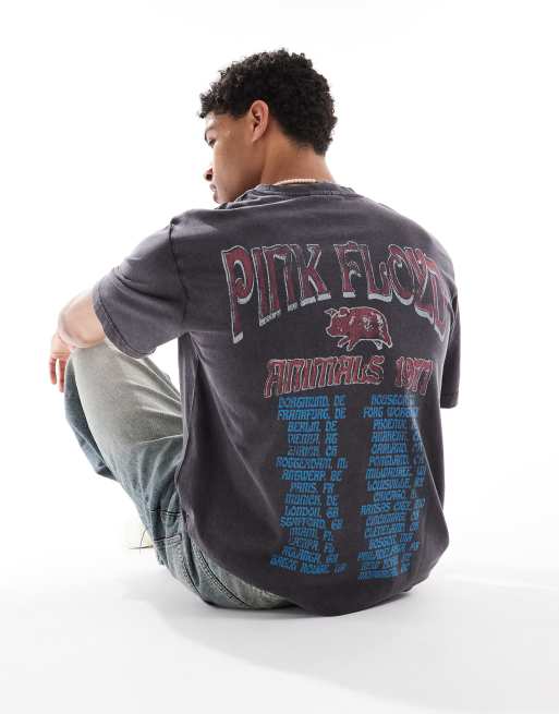 Jack & Jones – Oversize-T-Shirt in Grau mit „Pink Floyd“-Rückenprint