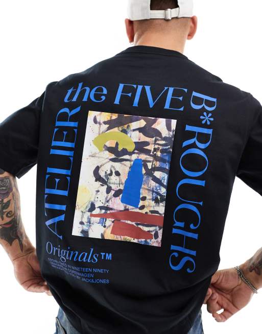Jack & Jones – Oversize-T-Shirt in Schwarz mit Kunst-Rückenprint