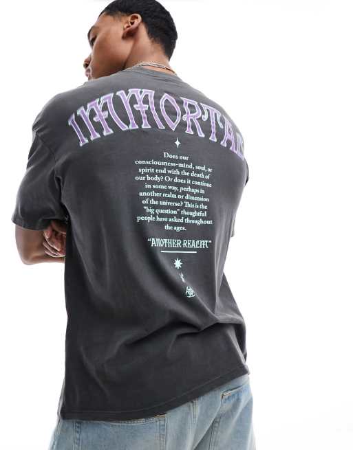Jack & Jones – Oversize-T-Shirt in verwaschenem Schwarz mit „Immortal“-Rückenprint