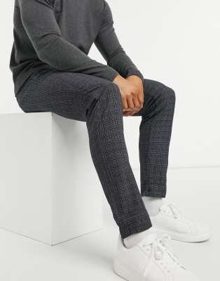 Jack & Jones Premium – Grau karierte Anzughose aus Jersey