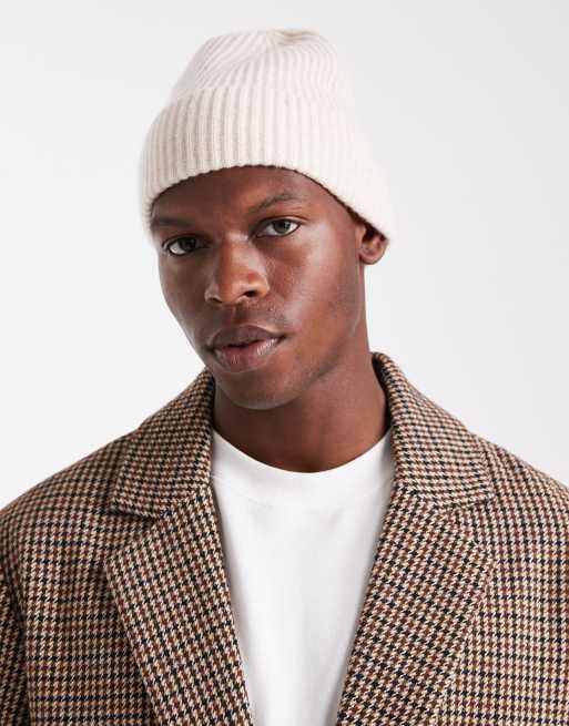 Jack & Jones Premium – Hochwertige Mütze aus Wollmix in Beige