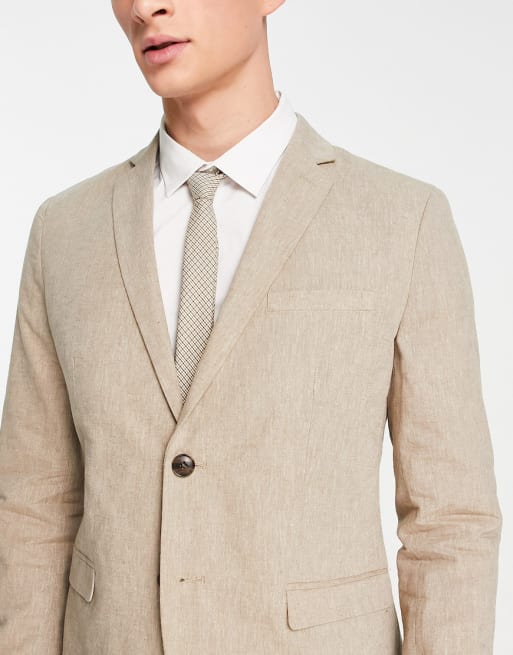 Jack & Jones Premium – Schmaler Anzug aus Leinenmix in Beige