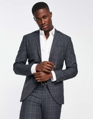 Jack & Jones – Premium – Sehr schmal geschnittene Anzugjacke in Blau kariert