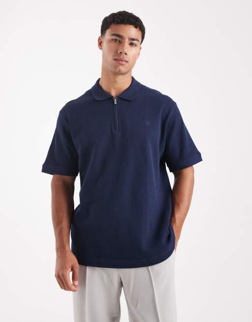 Jack & Jones Premium ‑ Strukturiertes Polohemd in Schwarz mit Reißverschluss
