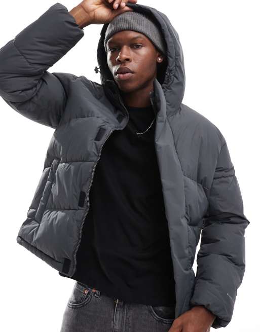 Jack & Jones – Pufferjacke in Dunkelgrau mit Kapuze