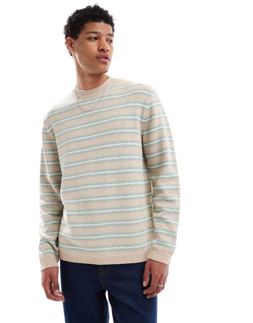 Jack & Jones – Pullover aus Bouclé-Strick in Blau mit Streifen