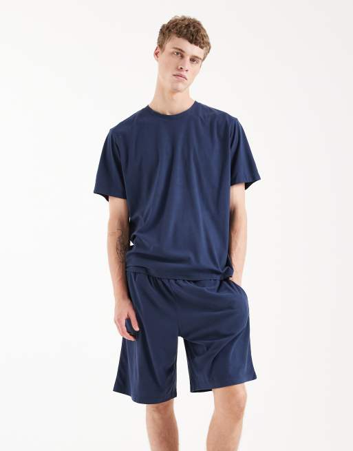 Jack & Jones – Pyjama in Marineblau, bestehend aus T-Shirt und Shorts
