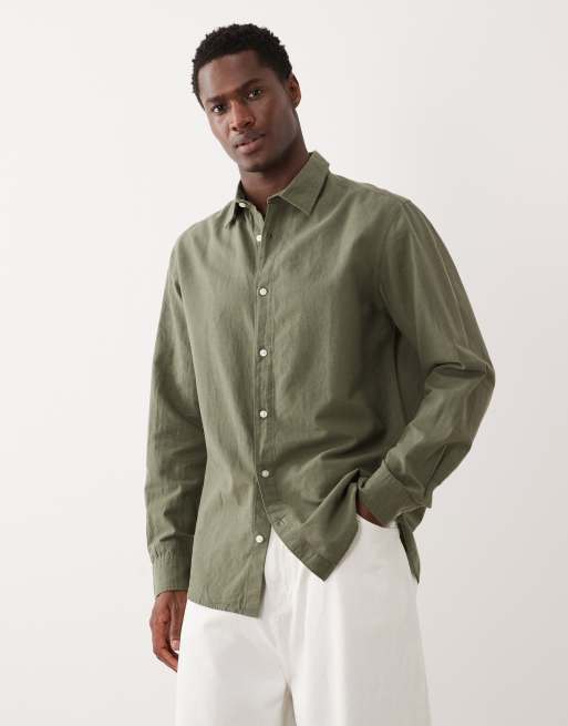 Jack & Jones – Regular-Fit-Hemd aus Leinenmix in Khaki