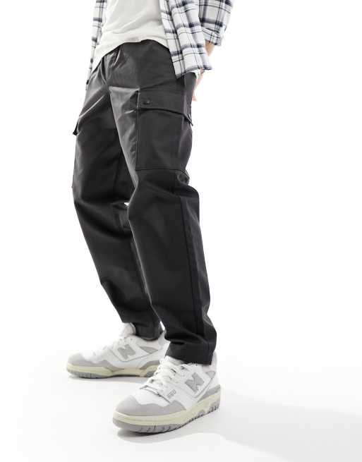 Jack & Jones – Schmal zulaufende Cargohose in Grau mit weitem Schnitt und Tunnelzug