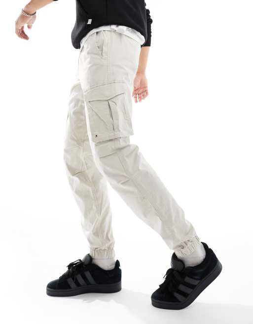 Jack & Jones – Schmal zulaufende Cargohose in Wollweiß mit Bündchen