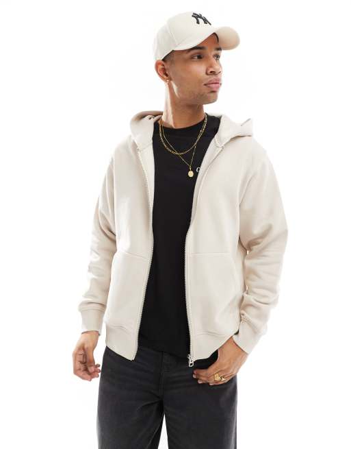 Jack & Jones – Schwere Oversize-Kapuzenjacke in Cremeweiß, 400 g/m²