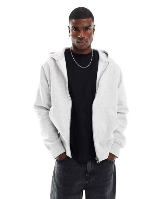 Jack & Jones – Schwere Oversize-Kapuzenjacke in Hellgrau, 400 g/m²