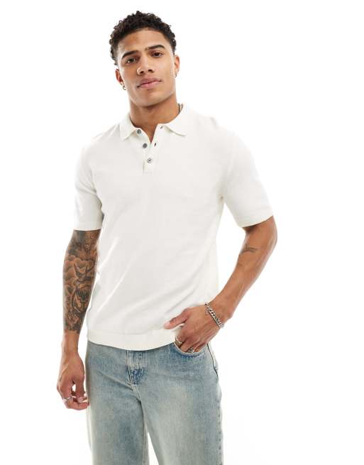 Jack & Jones – Strick-Polohemd in Weiß