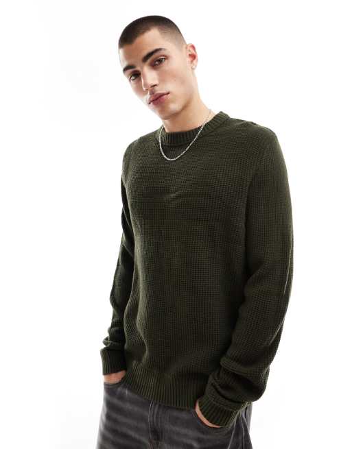 Jack & Jones – Strukturierter Pullover in Khaki mit Rundhalsausschnitt