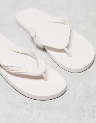 Jack & Jones – Zehenstegsandalen in Wollweiß mit Logo
