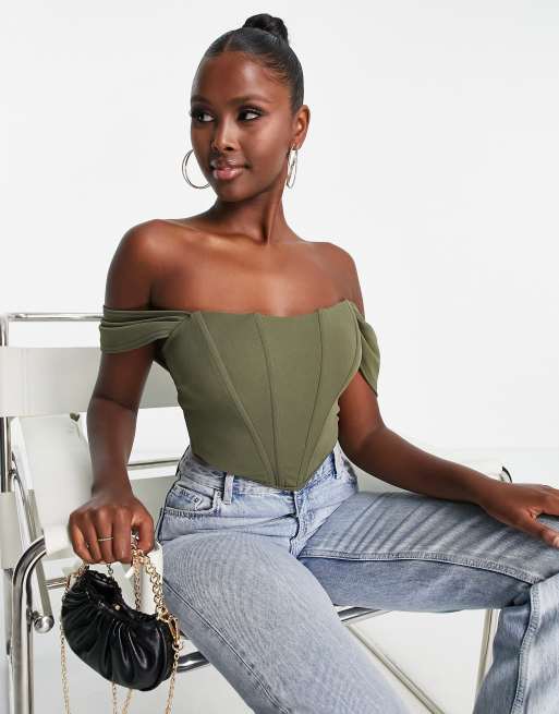 Jaded Rose – Korsett-Oberteil mit drapierten Ärmeln in Khaki