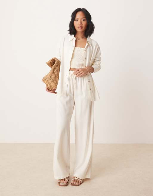 JDY Petite – Set aus Leinenmix in Weiß, mit Hemdbluse und Hose