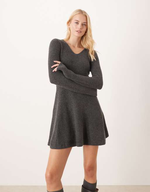 JDY Tall – Mini-Strickkleid im Skater-Stil in Dunkelgrau