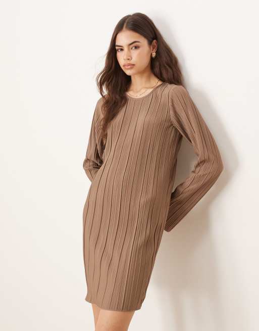 JDY Tall – Plissiertes Minikleid in Hellbraun mit ausgestellten Ärmeln